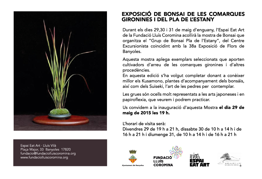 L’espai Eat Art – Lluís Vilà (Plaça Major, 33 de Banyoles) acollirà l’exposició amb motiu de l’exposició de Flors de Banyoles. La mostra durarà tres dies: 29, 30 i 31 de maig.